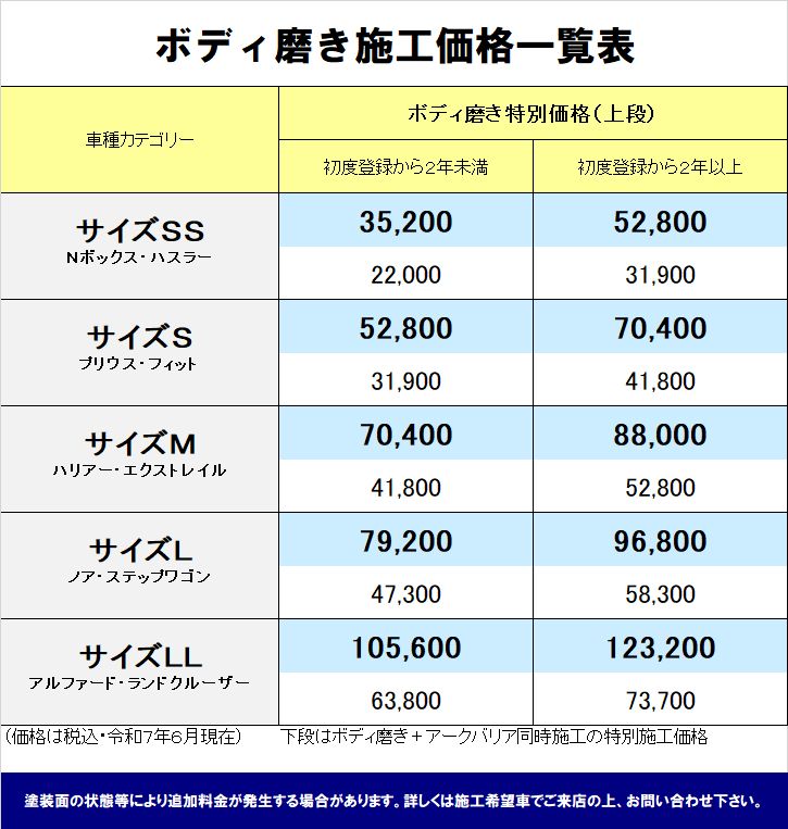 ボディの塗装面は洗車方法・頻度や保管状況によってくすみ・劣化のスピードは様々です。