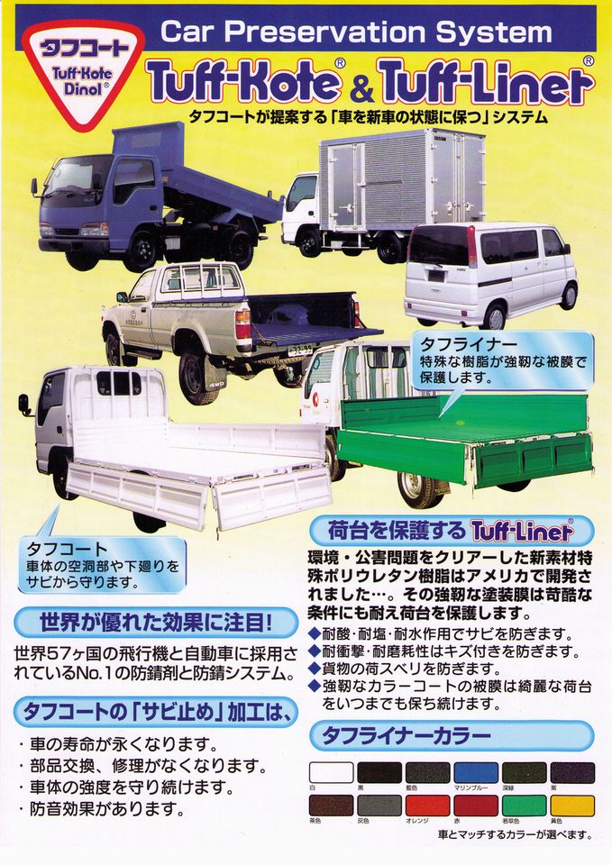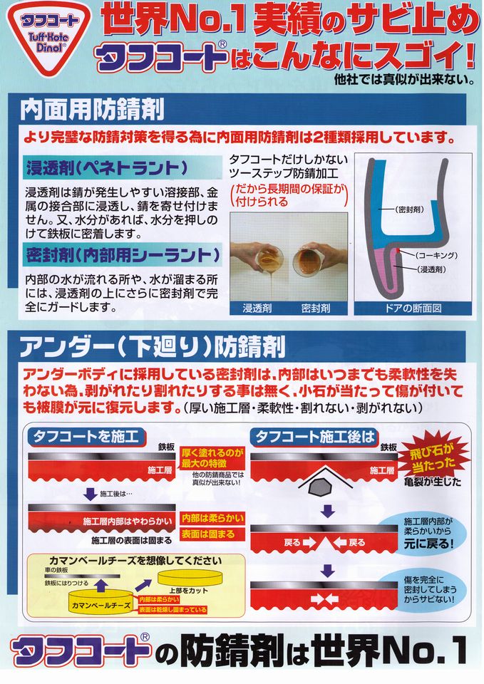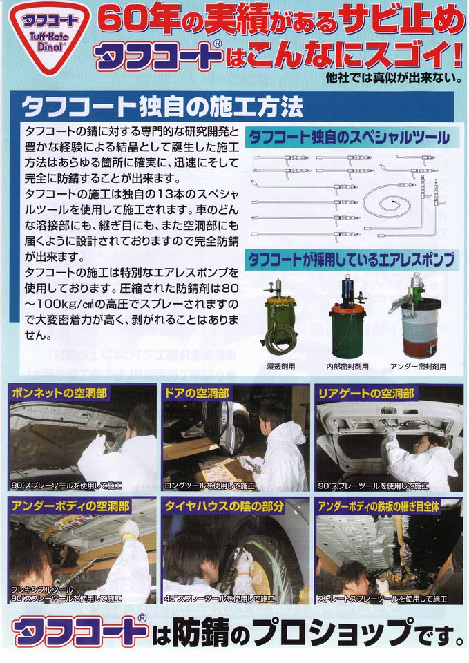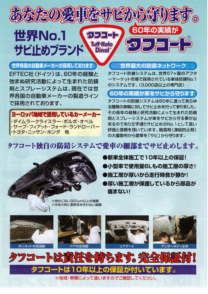 タフコートはダイノール社(スウェーデン)の防錆システムで、世界各国の自動車メーカーや