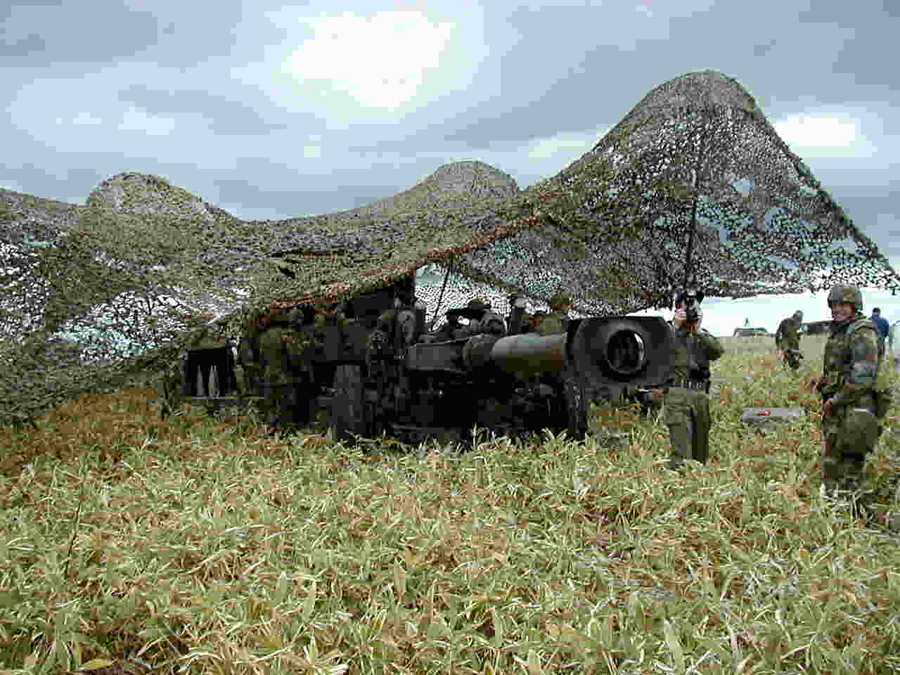 砲撃発射地点の様子(向こうに見えるのは迷彩した155ミリ榴弾砲) 2000・6・7
