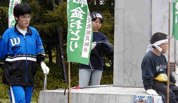 | ŒßŒã‚QŽž‰ß‚¬@¡”N‚Ì݉c‚ªŽn‚Ü‚Á‚½B‚Ü‚¸A•½˜a”è‚ÌŽü‚è‚ɂ̂ڂè‚ð—§‚Ä‚éB | |