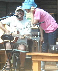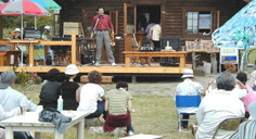| 喫茶「はるにれ」前の広場 テントでは手づくりのおでん、カレーライスが並び、共同作業所「スワンの家」の木工品やお菓子も即売。 | ||