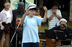 | 松平晃さんのトランペットに聞き入る人たち | アレン・ネルソンさんと地元ギタリストのセッション | |