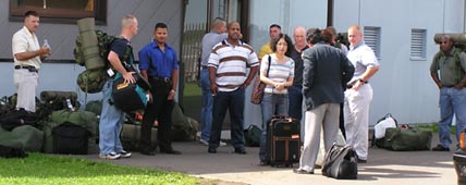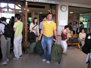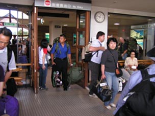 8月31日、12時35分、海兵隊訓練部隊の第1陣(男9・女1)が中標津空港に到着しました。 使われたのは、東京発ANK837便。一般乗客に混じっての現地入りは初めてのこと。 7年目・今回で6回目となる矢臼別演習場での訓練がとうとう始まりました。 |