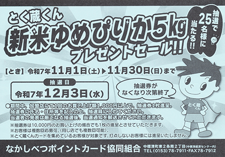 お買い物はポイントカード加盟店で!な かしべつポイントカード とく蔵くん![]() |